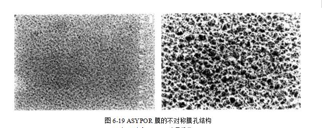 非均匀型聚合物过滤介质和其他过滤介质相比其一侧表面开孔更大,可以得到不 同于上面所述膜孔结构的另一种类型,例如ASYPOR过滤器.