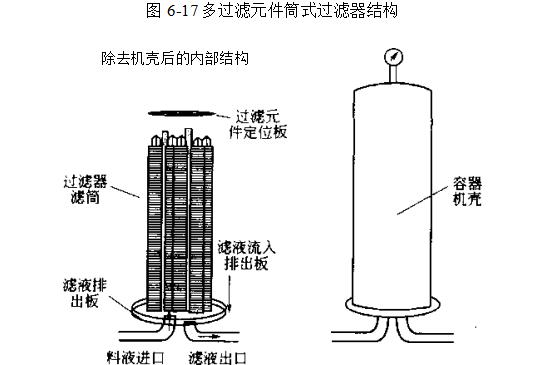 前面已经述及在单一的过滤容器内使用多个平行布置的滤芯完成过滤操作的情况,从这方面考虑筒式过滤器的操作就像滤芯过滤器.