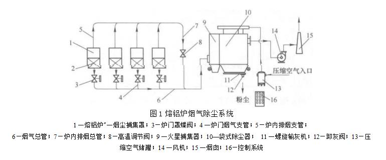 熔铝炉除尘系统由烟尘捕集罩,输气管道及阀门,火星捕集器,袋式除尘器,风机,自动控制系统等部件组成.