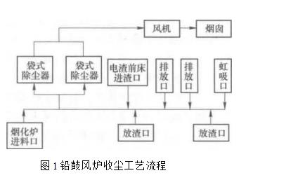 烟化炉粉尘成分和烟气特性列于表烟气先经过余热锅炉以回收热量并降低温度然后进入长袋低压脉冲袋式除尘器收尘.