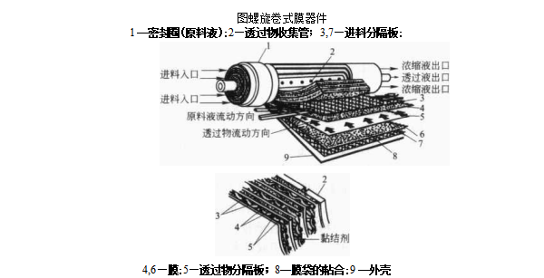 螺旋卷式(简称卷式)膜过滤器的结构是由中间为多孔支撑材料,两边是膜的 “双层结构”装配组成的.