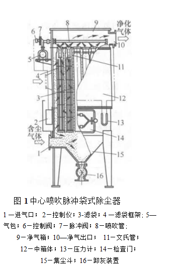 同时,净气出口阀和反吹阀相互切换,室外空气或净化后的气体反向通过滤袋,增强清灰效果.该方式要求除尘器取分室结构,逐室轮流清灰.