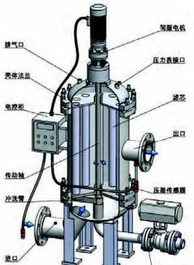 自洁式过滤器为多功能系统部件,具有压差自动报警、气水分离以及过滤功能。过滤器自洁能力强,不用经常清洗过滤网。对水系统中的氧化铁皮、老垢、污泥和空气等杂质进行有效地排除,以保证水质的清洁