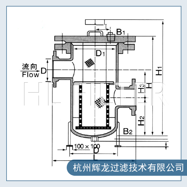 篮式过滤器(Basket type filter),主要由接管、主管、滤篮、法兰、法兰盖及紧固件等组成。当液体通过主管进入滤篮后,固体杂质颗粒被阻挡在滤篮内,而洁净的流体通过滤篮、由过滤器出口排出。当需要清洗时,旋开主管底部螺塞,排净流体,拆卸法兰盖,清洗后重新装入即可。因此,使用维护极为方便。