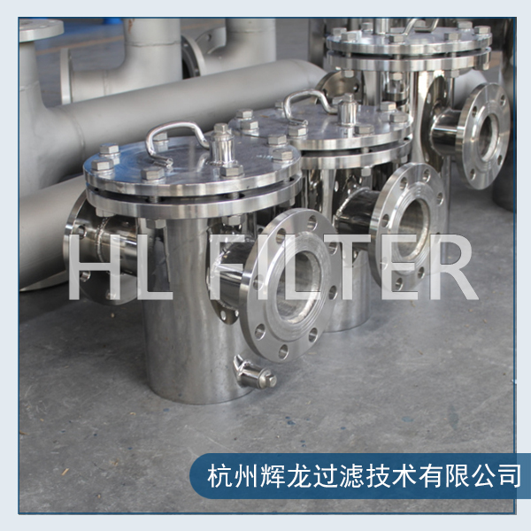 篮式过滤器(Basket type filter),主要由接管、主管、滤篮、法兰、法兰盖及紧固件等组成。当液体通过主管进入滤篮后,固体杂质颗粒被阻挡在滤篮内,而洁净的流体通过滤篮、由过滤器出口排出。当需要清洗时,旋开主管底部螺塞,排净流体,拆卸法兰盖,清洗后重新装入即可。因此,使用维护极为方便。