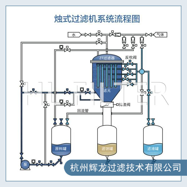 烛式过滤器是一款自动化压力式过滤装置,主要由筒体、滤芯、滤布、助滤剂、电脑控制系统和配件等组成,其他辅助设备包含空压机,压力感应器等,筒体和滤芯的材质主要为不锈钢(304...